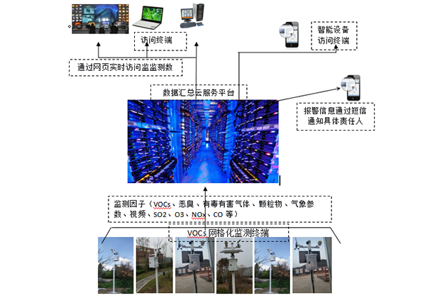 針對典型區域環境監測需求采用熱點網格方式,將區域分為3公里×3公里的熱點網格,以實現對區域有毒有害氣體、顆粒物及特征污染物的在線自動監測,并通過對區域環境監測數據的實時采集、存儲、傳輸、建模、評估,為污染排放控制和突發污染事故的預測預警、污染溯源、應急響應提供關鍵數據和技術支持。